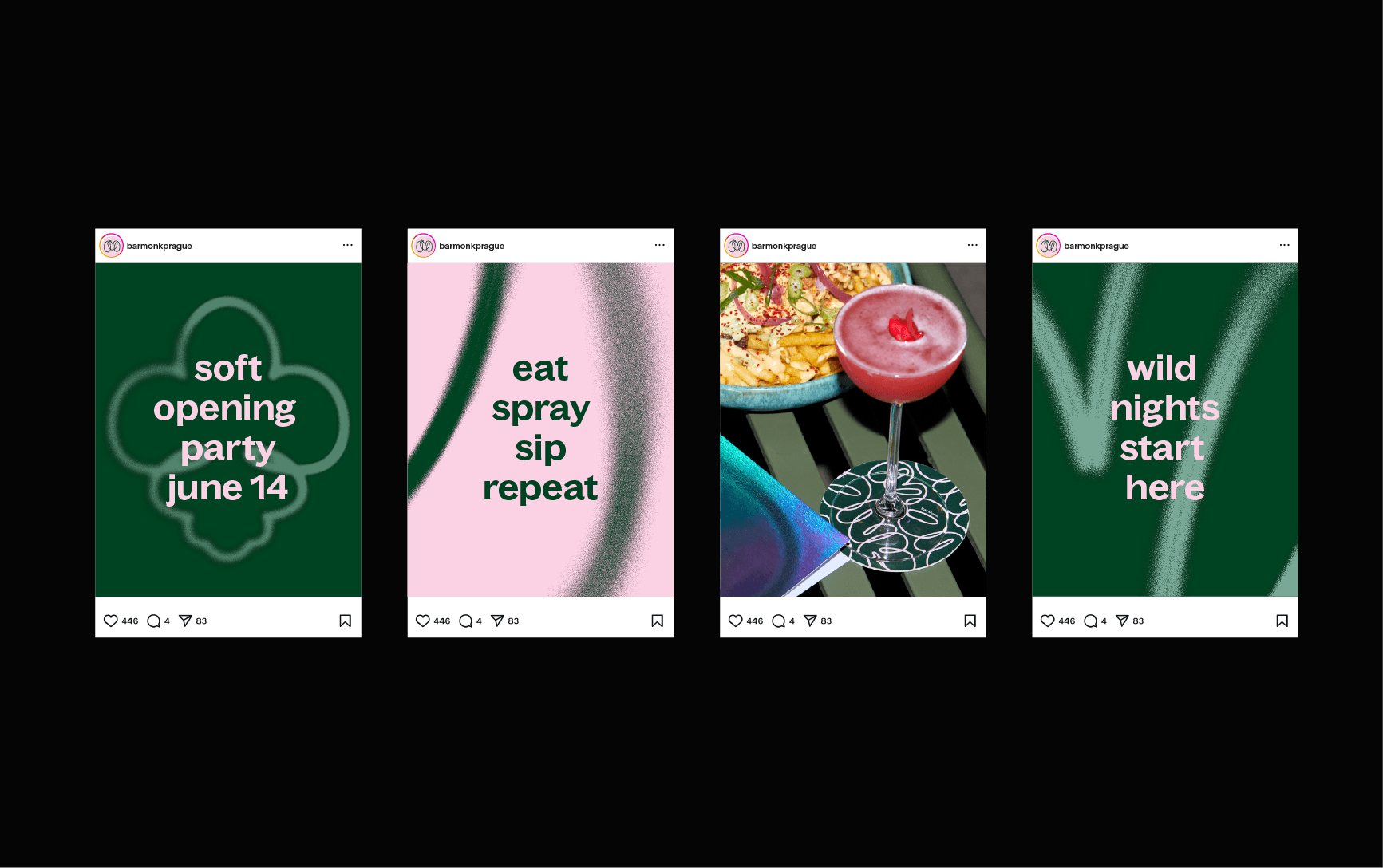 The identity embraces punk rebellion through graffiti-inspired design. The logomark resembles an authentic street tag, transforming across applications from clean to spray-painted depending on context. Playful neon WC icons add street humor. The system lets Bar Monk stay punk while still keeping it warm and welcoming.