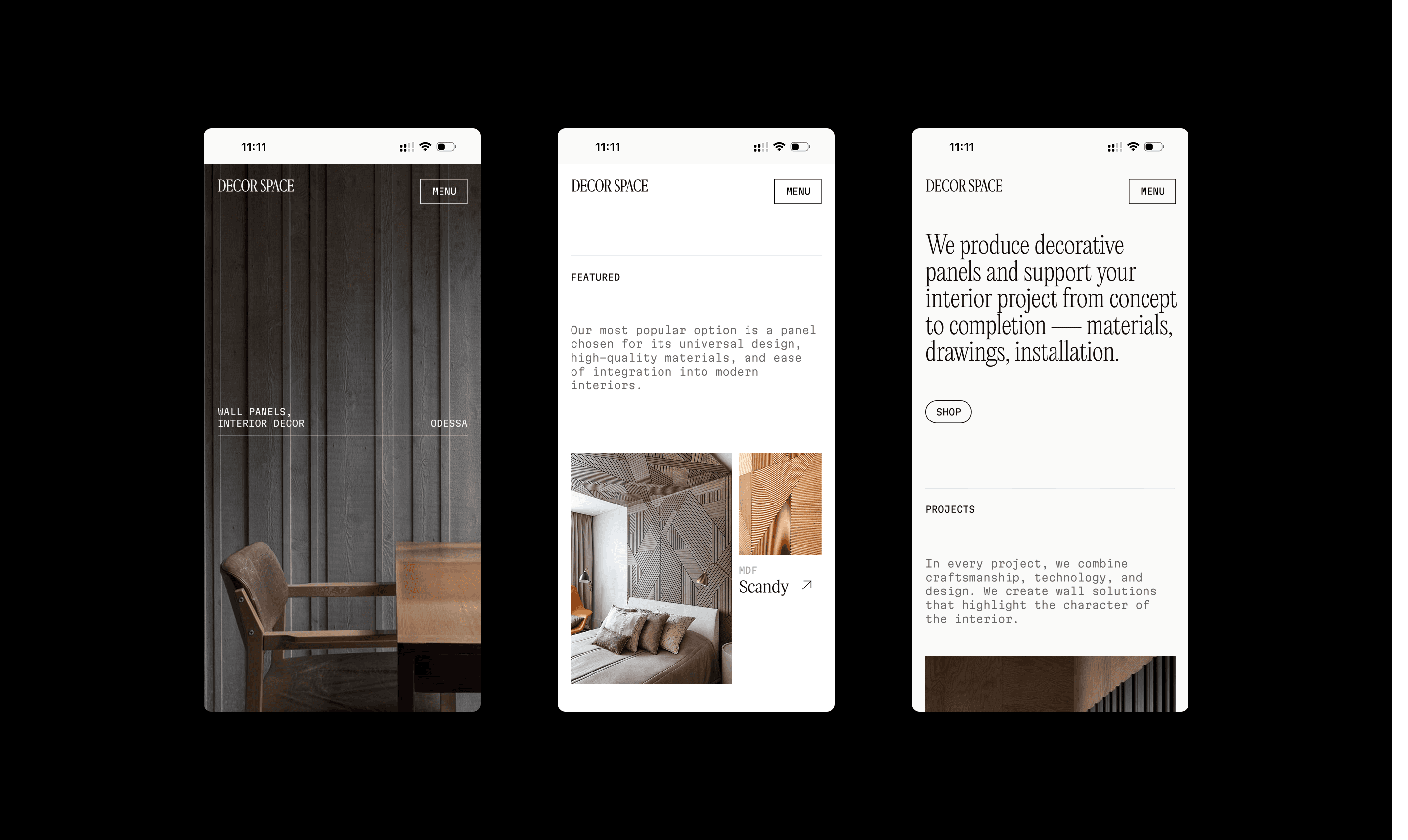 Decor Space is a Ukrainian brand specializing in premium decorative wall panels. The goal was to present the product as high-quality, elegant, and thoughtfully crafted.