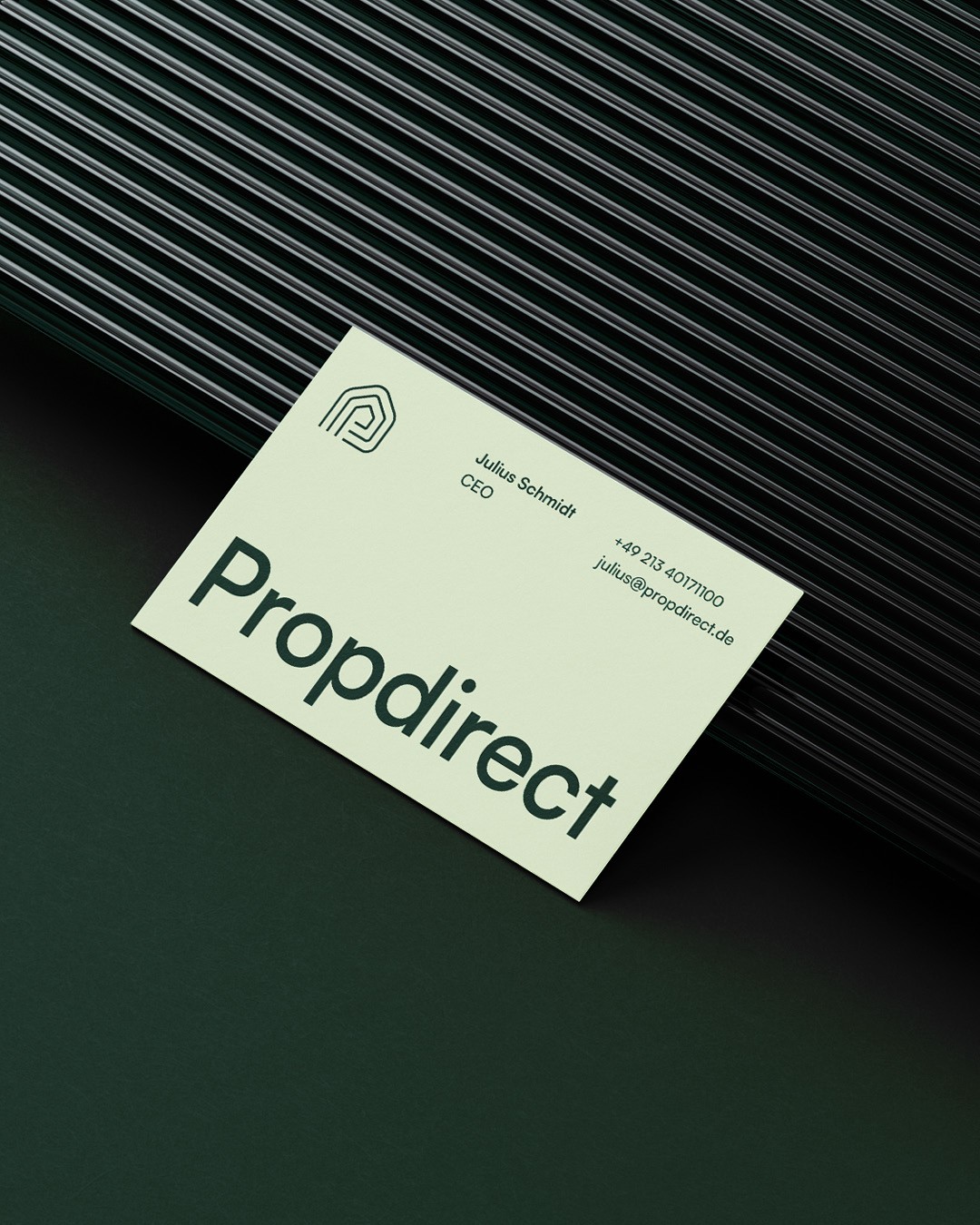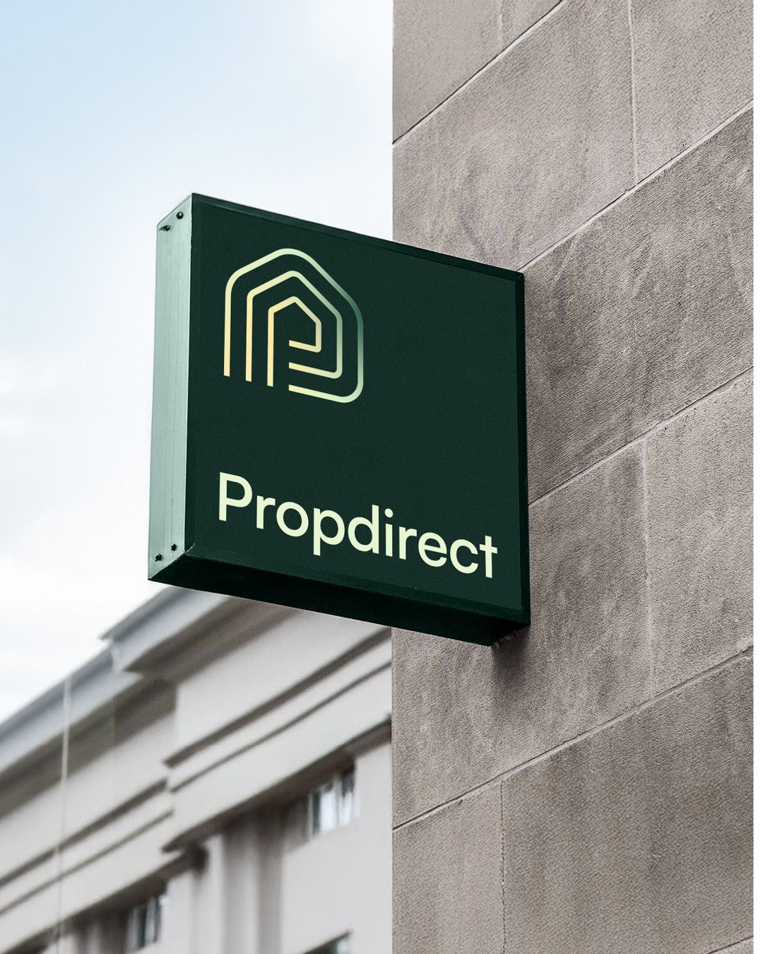 The concept is built around the idea of “flow,” expressed through a monogram combining the letter P, a credit-card-like chip, a house silhouette, and directional lines symbolizing continuous cash movement. A deep forest green palette communicates financial stability, while cream tones add warmth. Paired with clean, modern typography, the design blends fintech clarity with real estate trust, helping Propdirect appeal to investors looking for reliable, immediate cashflow.